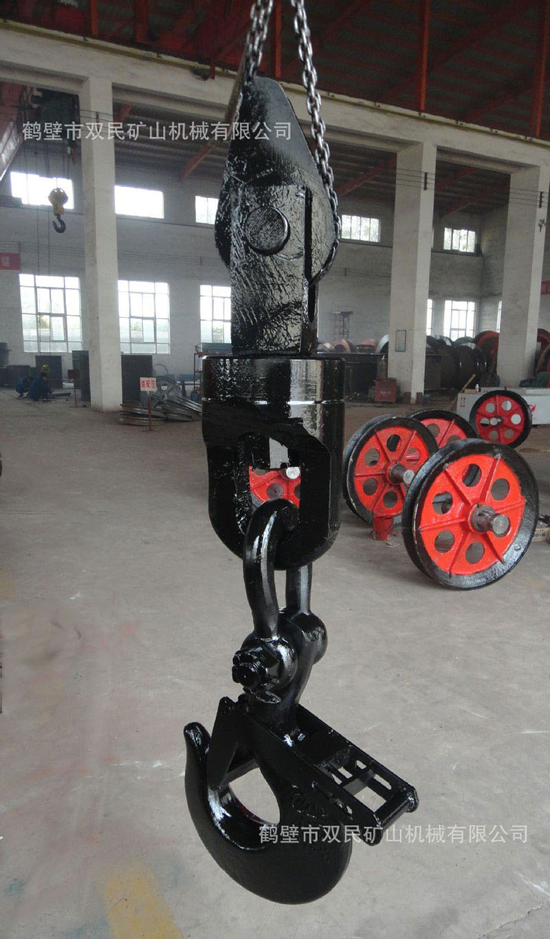 鑿井懸吊天輪是按JZ系列鑿井絞車鋼絲繩最大靜張力分別為5t(50kN),10t(100kN),16t(160kN),25t(250kN),40t(400kN)進行配套設計的。
